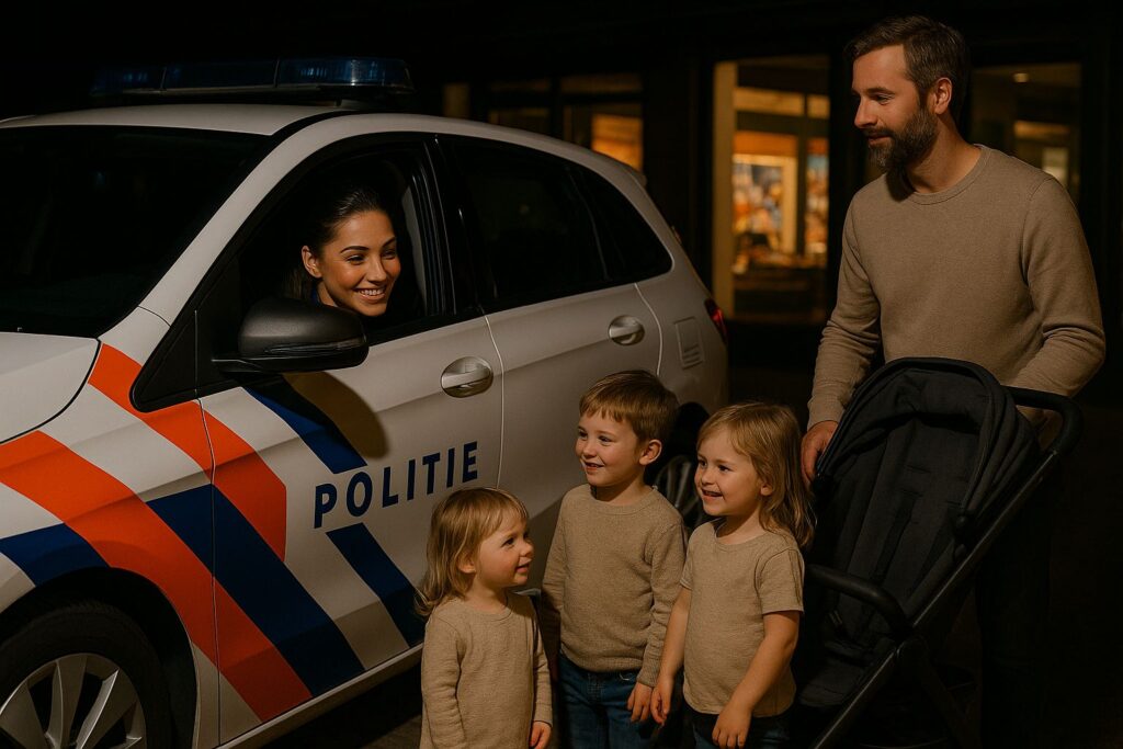 Mijn kinderen verstijfden. Niet uit angst, maar van pure fascinatie. Er was een echte politie. Een mevrouw politie. En ze sprak. Met hen nog wel.
